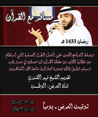 يسلط البرنامج الضوء على أفضل الطرق العملية التي استطاع من خلالها الكثير من حفظة القرآن أن يمسكوه في صدورهم , وسيتم توثيق ذلك بصورة احترافية متاحة لكل من يشاهد البرنامج تلفزيونياً , مستعرضا مكافآت رب السموات لأهل القرآن وخاصته , وينتقل فريق العمل مسافراً مع القرآن بحثا عن حفظته في (تركيا ، المغرب ، مصر ، موريتانيا ، الشيشان ، المدينة المنورة) لنكتشف وسائل الحفظ في هذه الدول وعدد حفظته وتنوع البيئة والشكل فيما بينها إذ يسامرهم ويحدثهم الشيخ فهد الكندري عن اخلاق القرآن وحفظه ليحقق أهدافه في غرسها والتشجيع على حفظه ومعرفة اللغات المختلفة العربية والأعجمية.