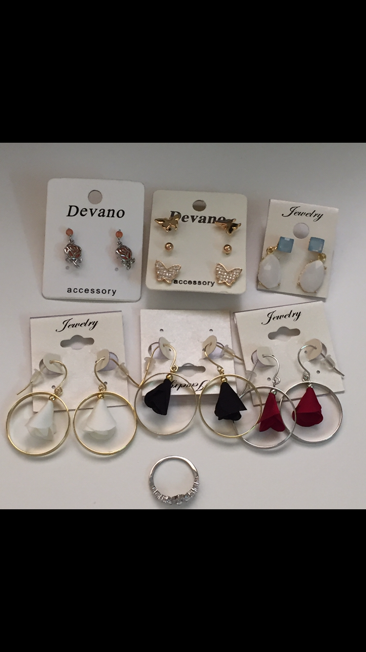 الحلق اللي فيه وردة جوري عجبني مره فأخذت منه 3 ألوان الاحمر ع فضي والأبيض والاسود ع ذهبي