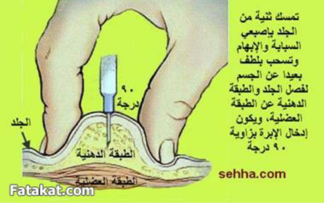 صرت اسحب الجلد على برا زي واجرب المنطقه اذا بديت أعز الابره والمكان عورني اغيره لين الاقي مكان مجرد اخذ الابره ما يوجع وتدخل الابره بسرعه بدون الم والابره اكون عاموديه ٩٠ درجه، هذي تجربتي ان شاء الله تكون واضحه لك وتفيدك. سحب الجلد مهم يقولك لانك تبعدين طبقه الجلد عن طبقه العضلصرت اسحب الجلد على برا زي واجرب المنطقه اذا بديت أعز الابره والمكان عورني اغيره لين الاقي مكان...