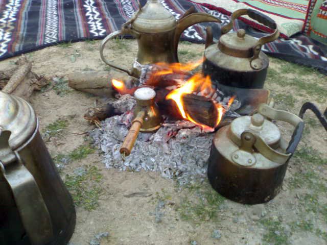 وهاذي شمسيه النشميه ركبت لنا دلال القهوه والشاي والحليب على مانجهز الفطور
