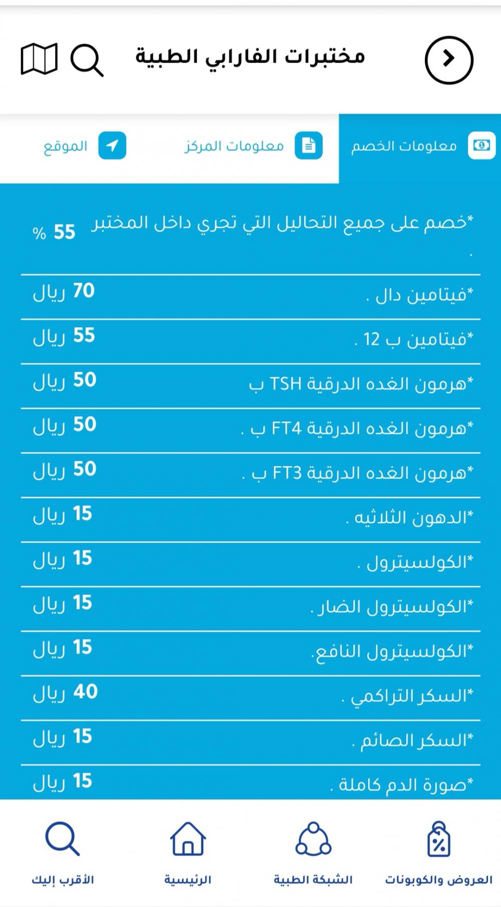 هذا موقع تكافل يعلمك كل مختبر أو مستوصف كم يعطونك خصم وانتي تكوني دافعه ٢٠٠ بس لمده سنتين