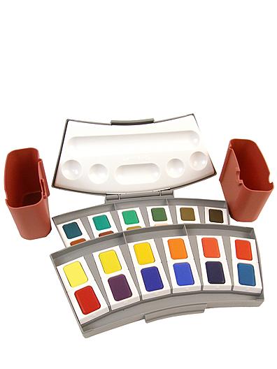 وتكون على شكل مستطيلات أو دوائر لونية جافة داحل علبة و تبلل بالماء بفرشاة قبل التلوين.