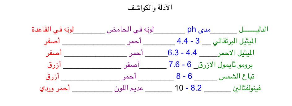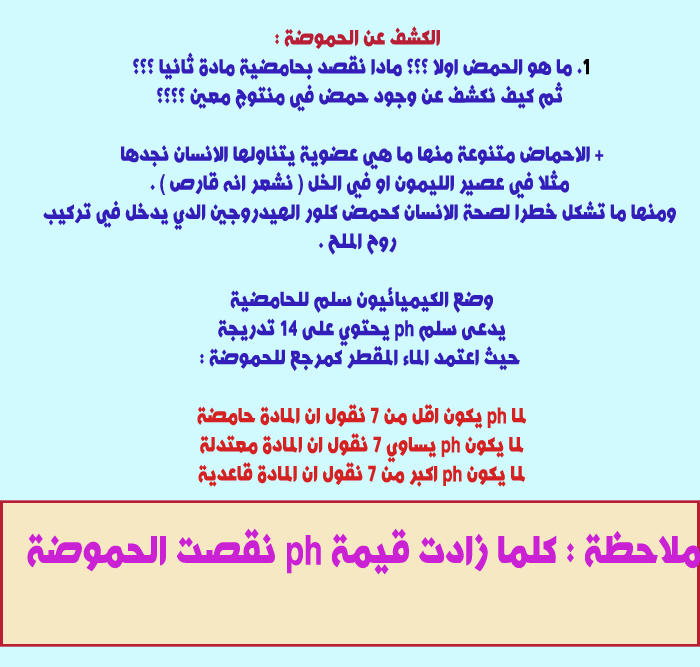 ملاحظة : كلما زادت قيمة ph نقصت الحموضة