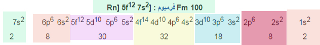 هذا توزيع الأكتروني لعنصر عددة الذري 100 لونته علشان يكون أوضح حاولو تتعلمو تحلو بسرعه بالتوزيع لأن الوقت قليلهذا توزيع الأكتروني لعنصر عددة الذري 100 لونته علشان يكون أوضح حاولو تتعلمو تحلو بسرعه...