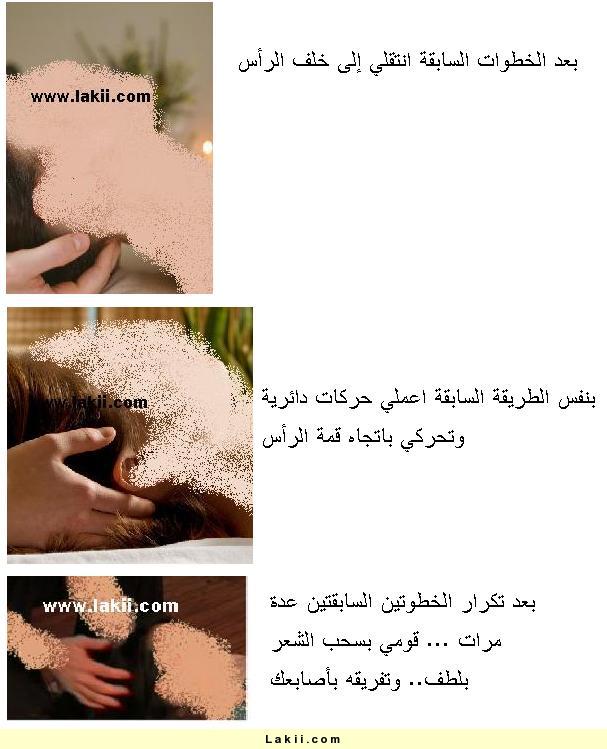 الخطوة 3 ) بلطف قومي بسحب الشعر ( بلطططططططططططططططف ) وليس بقوة للأعلى وداخلي أصابعك بين الشعرات