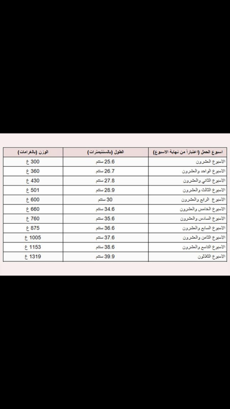 الحلوة ريوم هذا جدول بالوزن الطبيعي للجنين واذا زيادة او اقل بشي بسيط عادي
