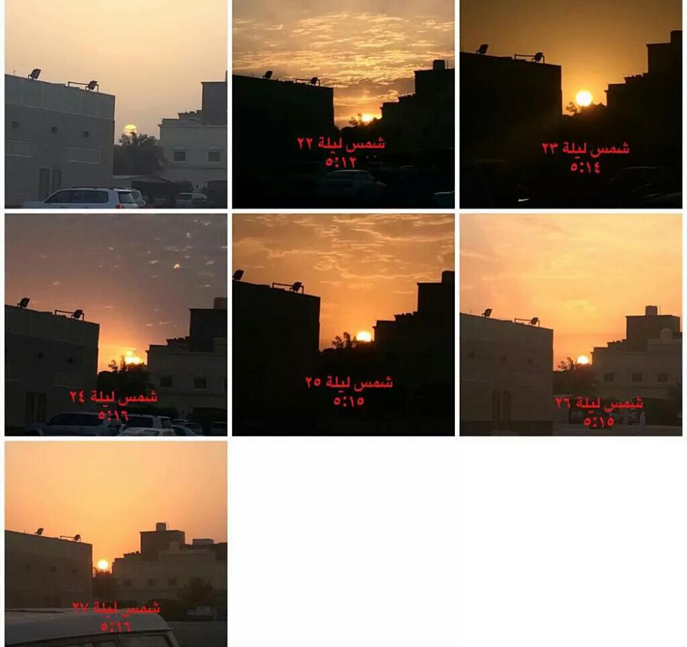 تصوير لاحد الاخوه ومتابعته للشمس من ليلة 21 حتى 27 والواضح بالصور ان ليلة 21 و 23 هما ارجى الليالي لان الشمس فيهما بدون شعاع