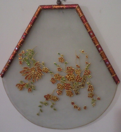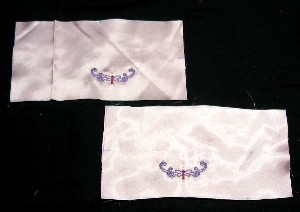 بعد الانتهاء من التطريز نقوم بقص القماش إلى 2 كما الصوره