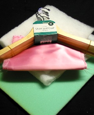 علاقه خشب ، قماش ساتان ،قطن ملبد على شكل لحاف، أو أشرطة قطن ملبد، شريطه
