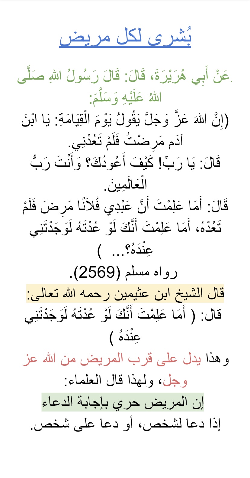 فكيف بأجر المريض نفسه !!