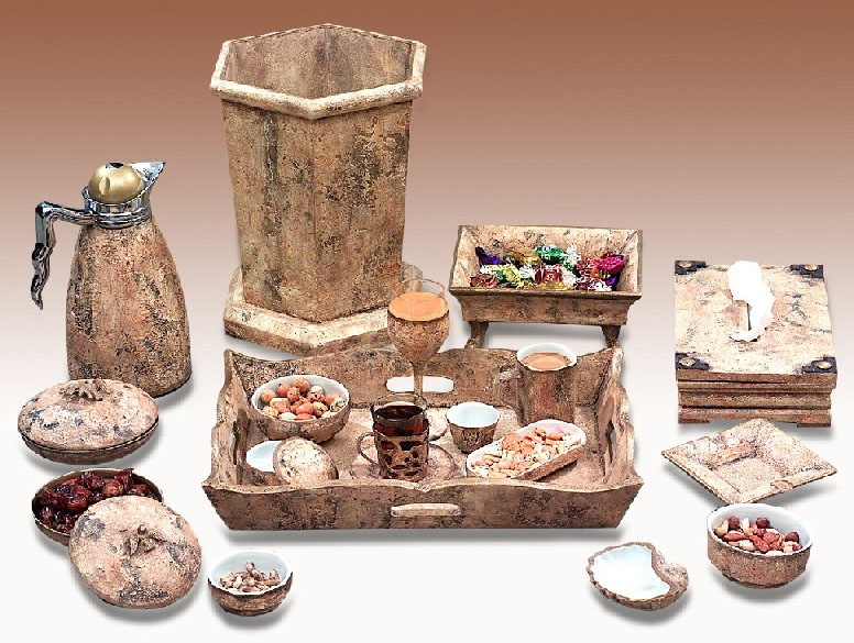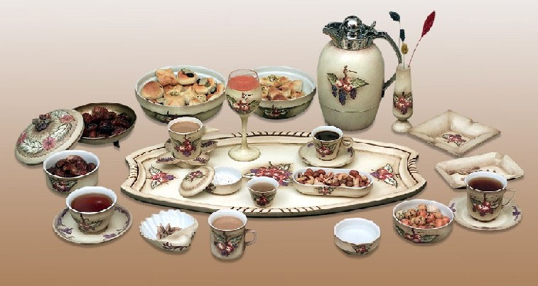 الصينيه ارش فيها الورد المجفف واحط الكاسات اشكال صغير وكبيره