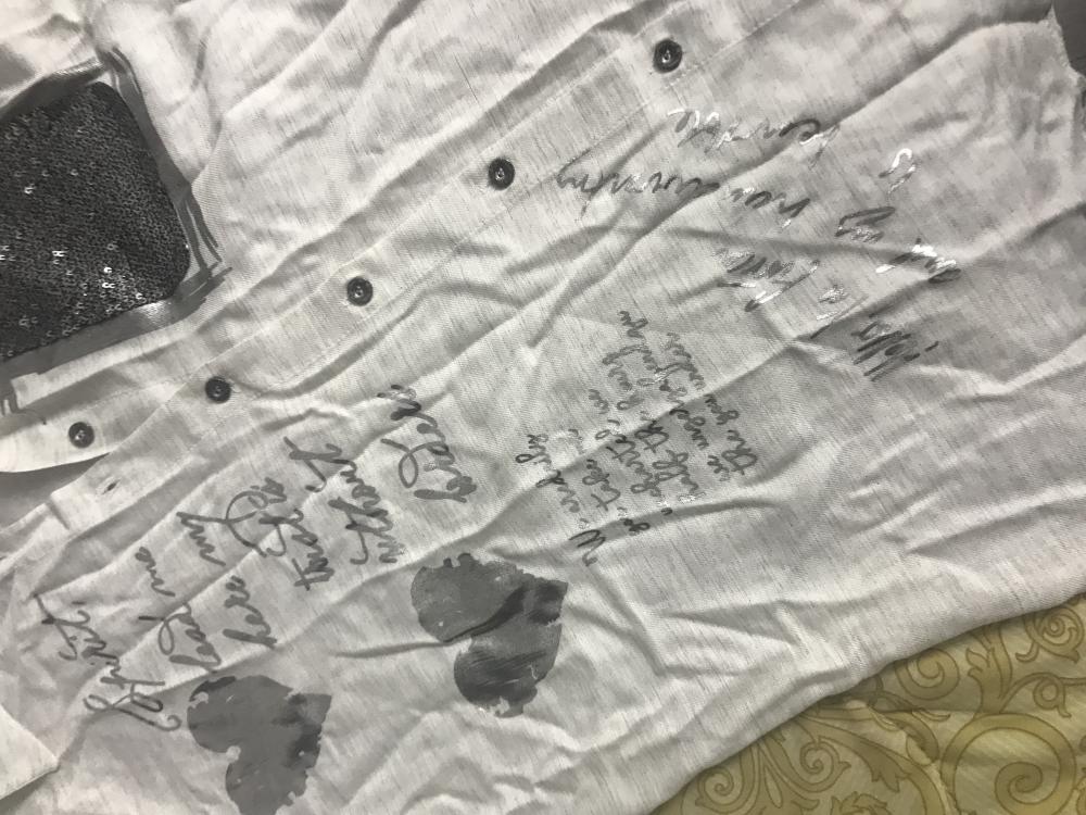 الخط مو باين كأنه توقيعات المهم لبس العافية البسي وتكشخي فيها 👚🕶💍💅🏼