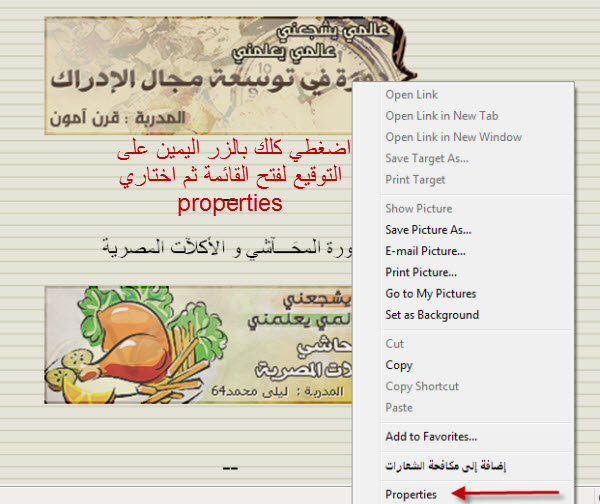 1. افتحي موضوع التواقيع واعملي كلك يمين على توقيع الدورة