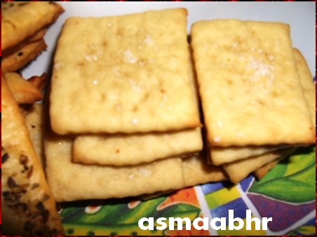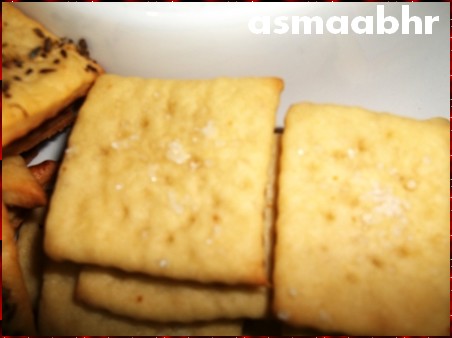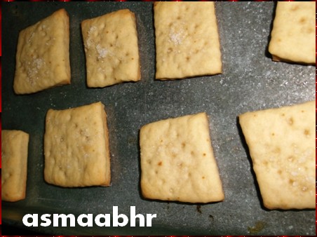 **نفرد العجينة ونقطع ثم نعمل ثقوب بالشوكة ونرش فوقها قليل من الملح