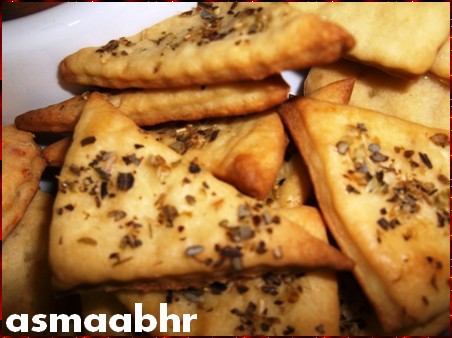 **نقطع العجينة ونعمل بها ثقوب وندهنها بالحليب ونرش فوقها الزعتر
