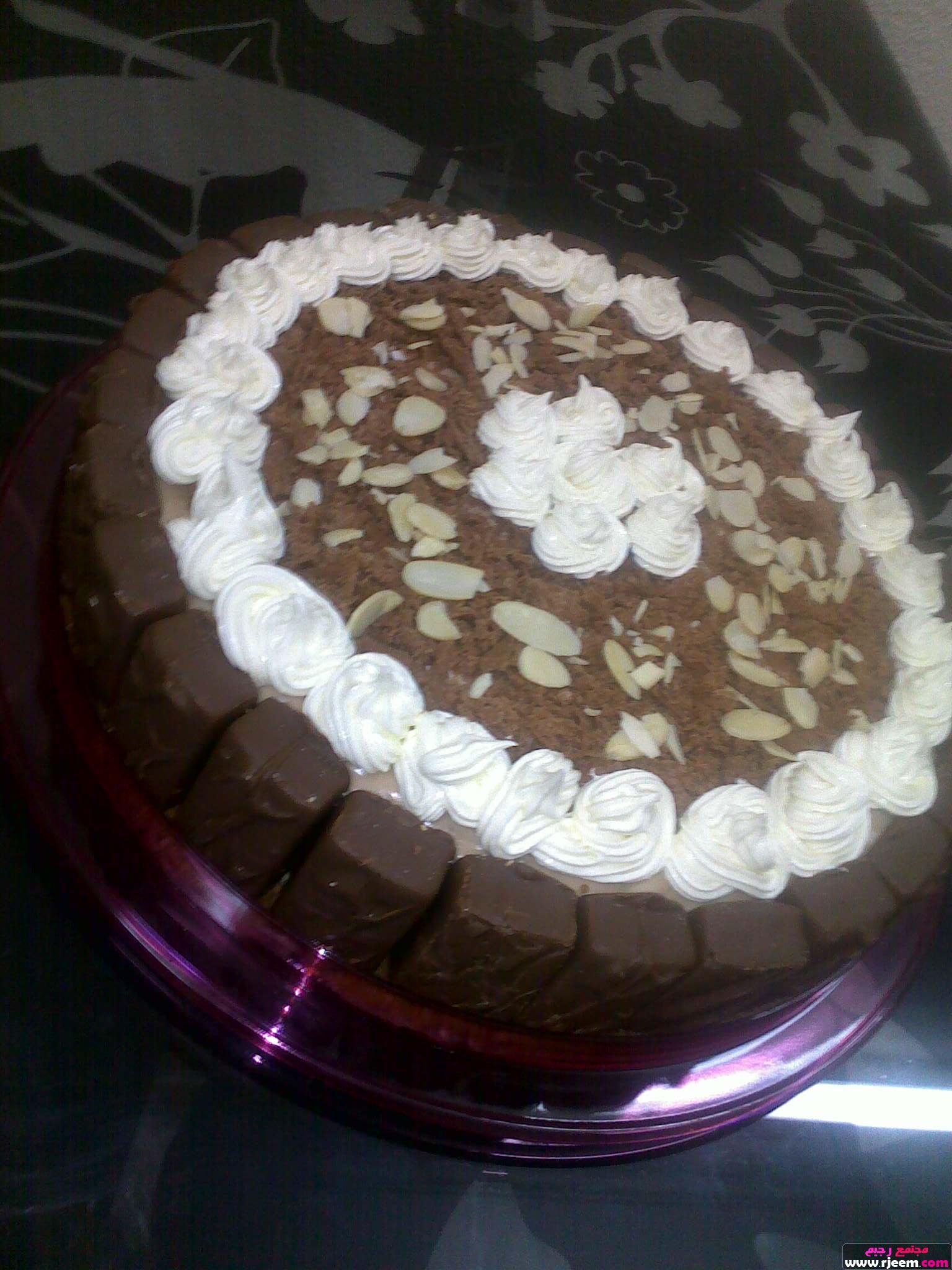 ثم نزين الوجة بشكولاتة جلكسي او فلليك ونرش الوجة بلوز حجازي مبشور
