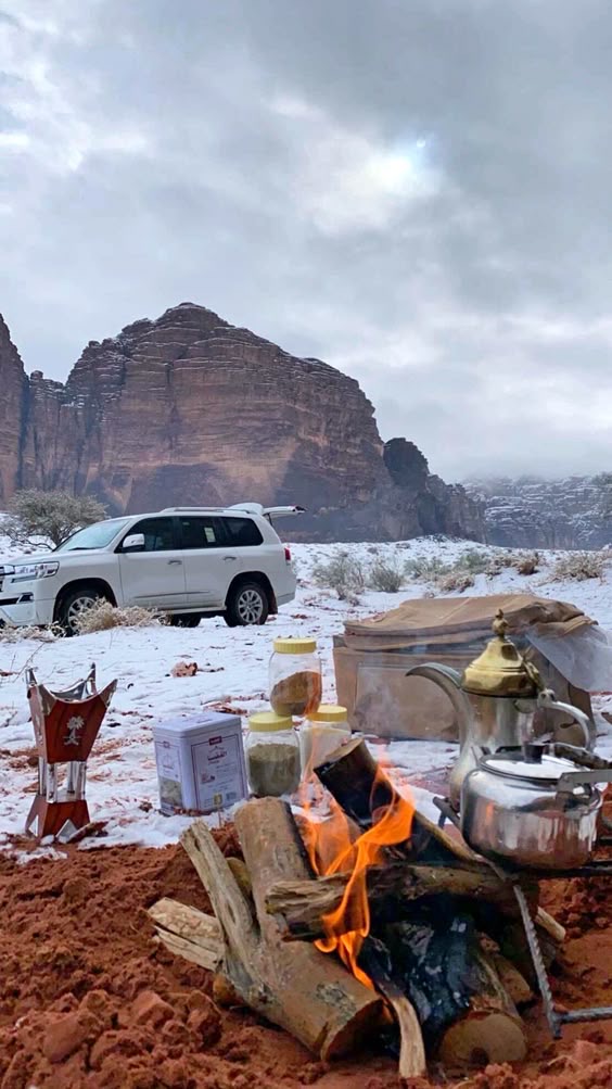 دائما اشوف اجواءهم بالشتاء على الجبال وشبات النار شي خيالييي وكأنك بالعلا !