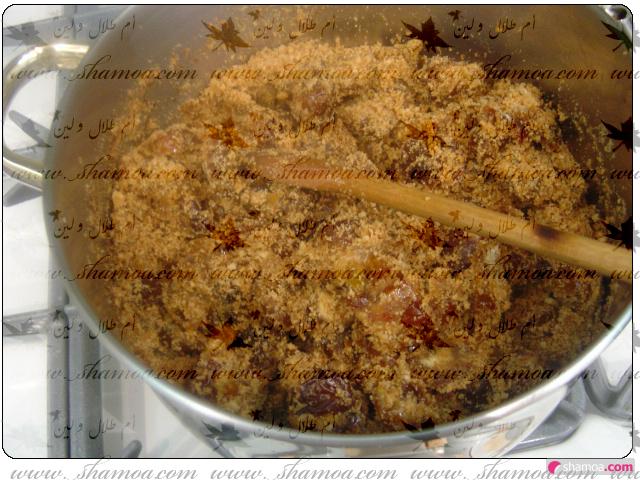 يضاف لها البسكويت المطحون ويحرك على نار هادئه