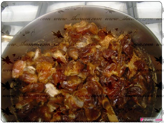 وبعد كذا نضيف التمر ونقلبه مضبوط مع البسكويت على شان يختلطوا