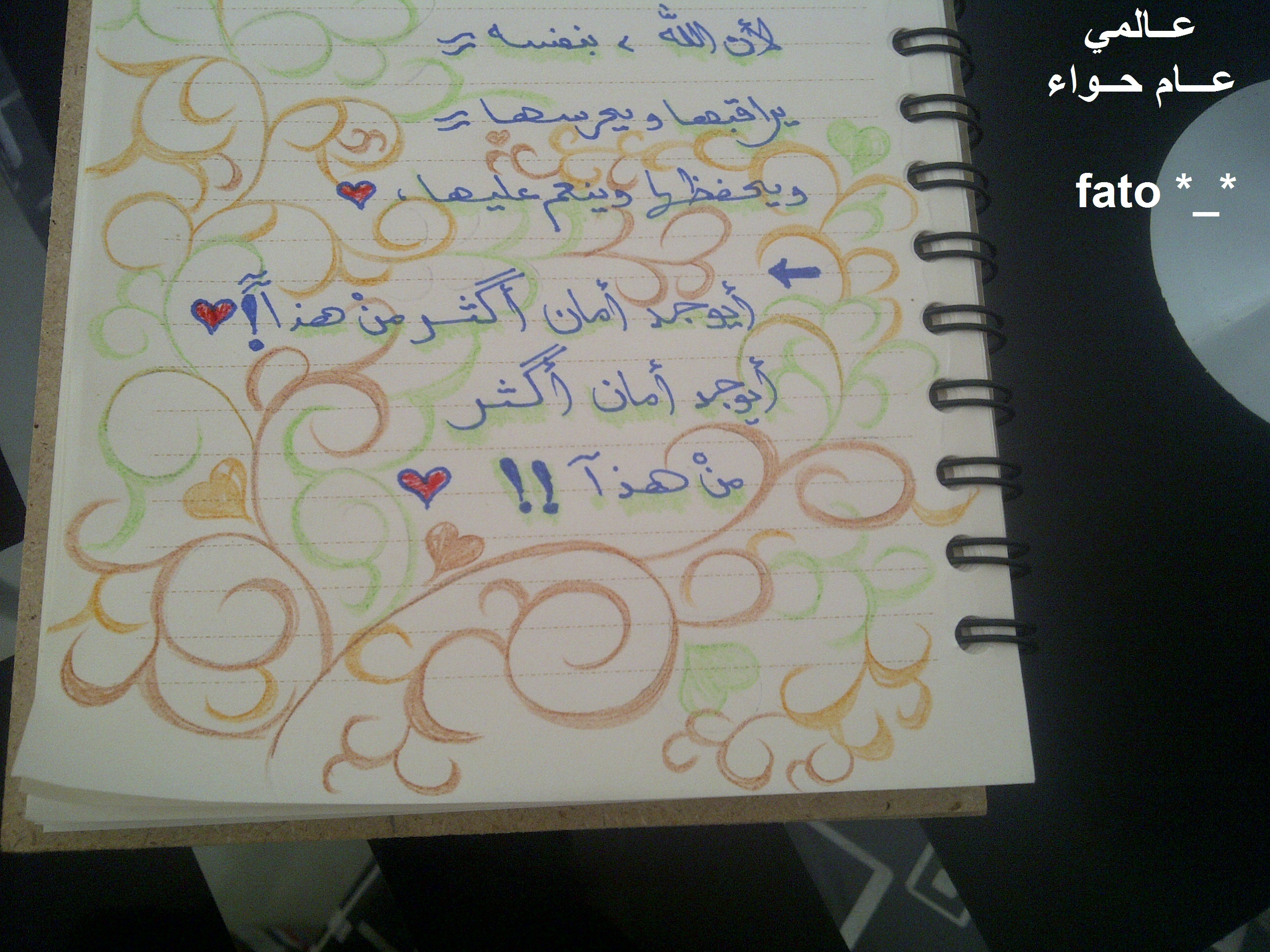 السلام عليكم مدربتي مشكووووره على جهودك الرائعه وكل عام وانت بخير قبل الزحمه :) هذا تطبيقي والله العالم كيف خلصته جزء بالسياره وجزء عيالي فوق راسي وووو قصه حياتي :09: راح اتدرب بالنوته عادي ؟؟ هذه الادوات والالوان المستخدمه وهنا التطبيق زوووووم استخدمت القلوب لانها عباره عن خطين متموجه حبيت اضيفها بالرسم ويااارب يعجبك وراضيه باي درجه يالغلا :)السلام عليكم مدربتي مشكووووره على جهودك الرائعه وكل عام وانت بخير قبل الزحمه :) هذا تطبيقي والله...