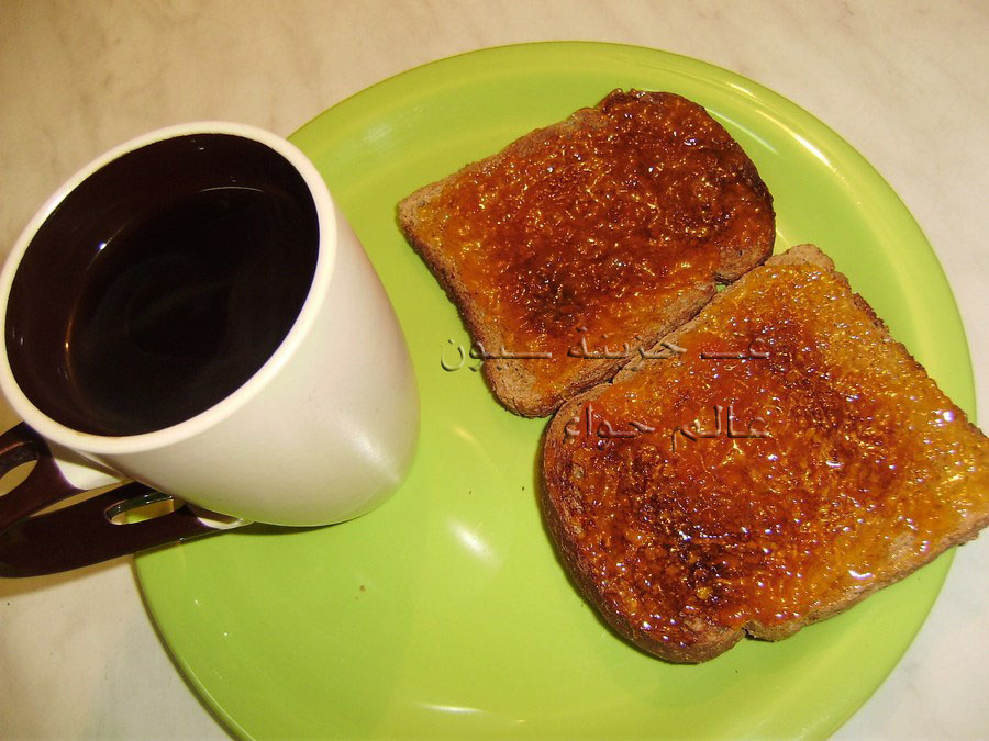 هالأيام فطوري توست بر محمص مع مربى مشمش وكوب كوفي سادة وهذاك اليوم خلص المربى وما عندي إلا توت