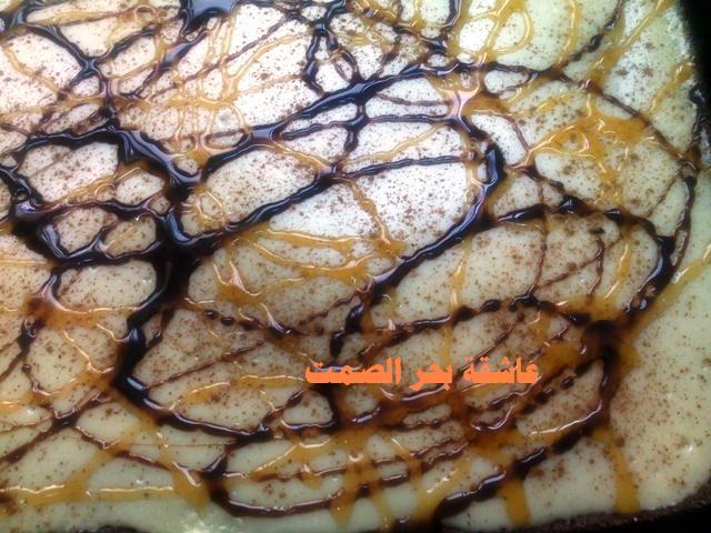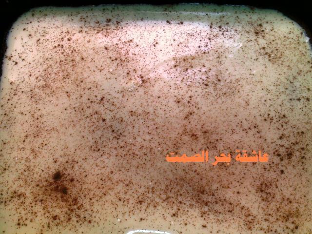 واسكبي فوقه خلطة الجبن والنستله على طول وهو حآر..ورشي عليه قرفه مممممم اعشق القرفه