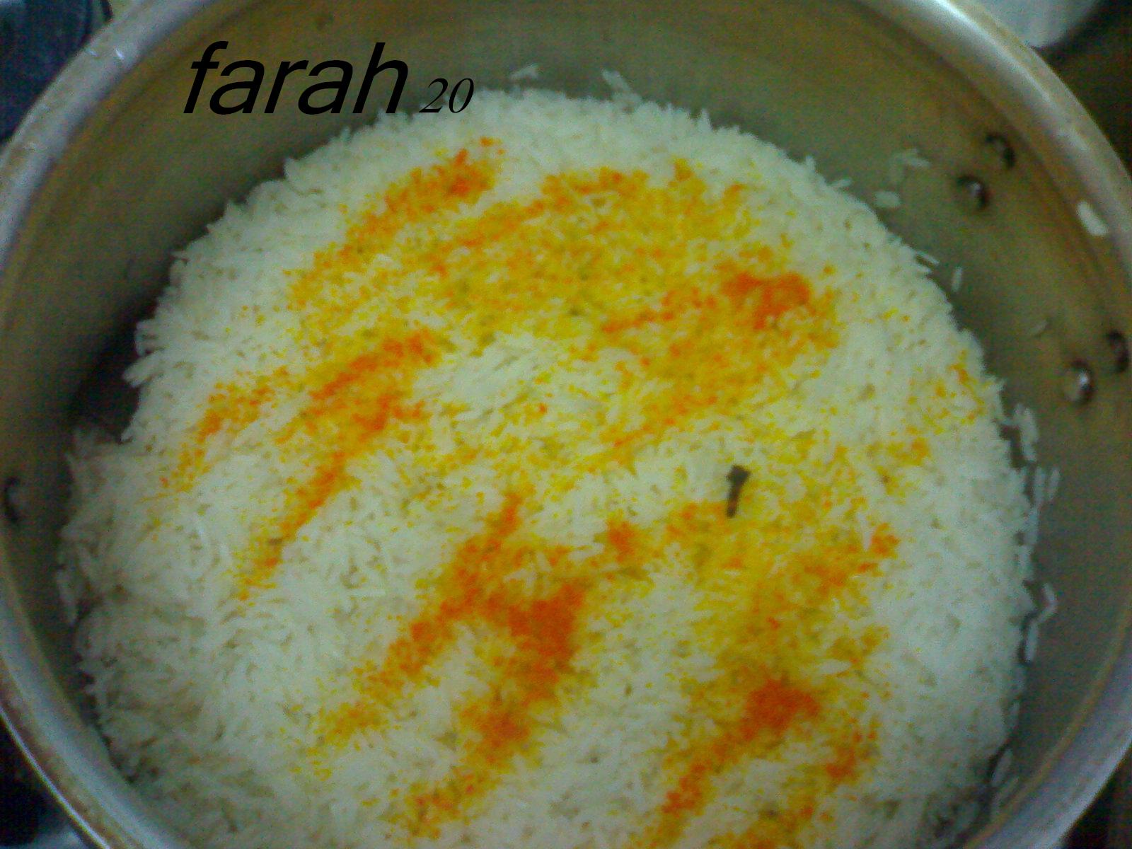 ونرصه بالقدر وهنا لما استوى ونضع الارز عليه ونتركه 5 دقائق على نار هادئه
