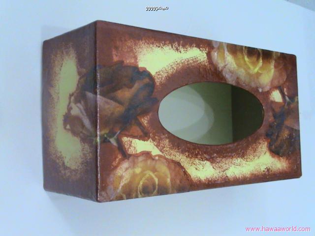ياكثر المعدن الي عمدي بس ناقصني مناديل اشكلها حلوه ولا كان طبقت العلبه مغطيتها بالجبسو