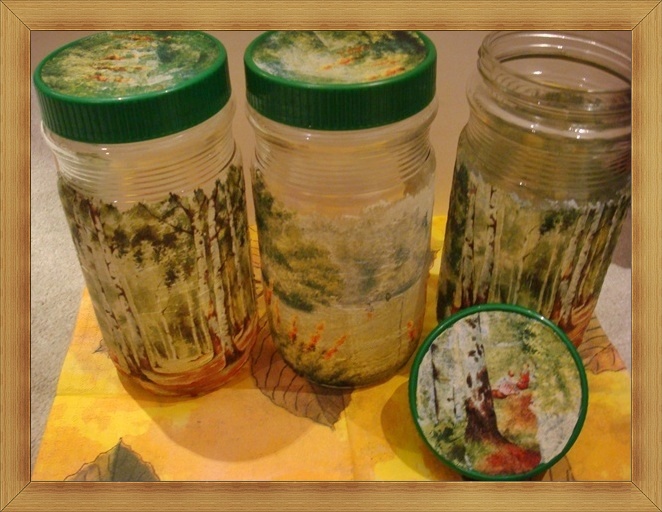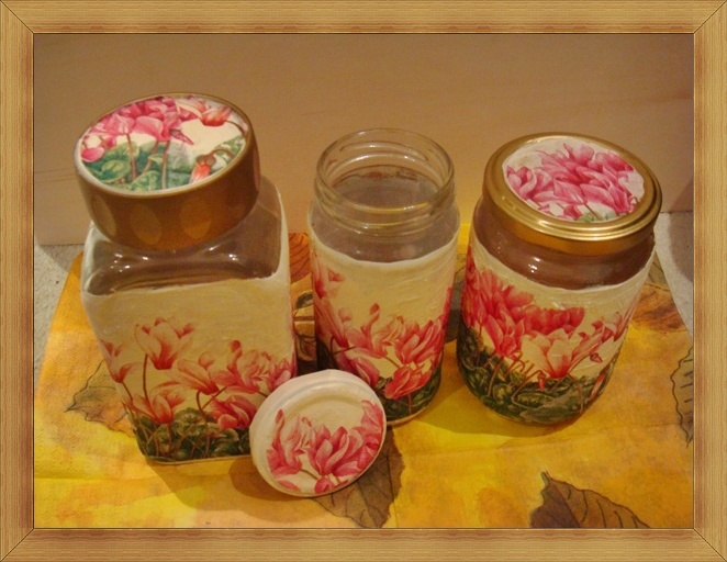 وهاذي برطمان سويت عليه ضربات بالفرشاة باللون الكريمي والذهبي وراح اشتغل عليه بالديكوباج بس انتظره ينشف.