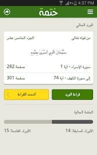 - إمكانية تحديد مدة الختمة أو كمية الورد الذي تود قراءته يوميا
