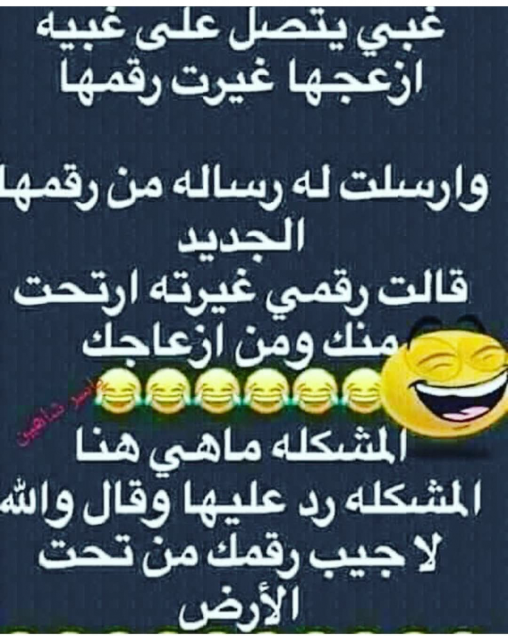 😂😂😂 الله يسعدك حبيبتي من جد ضحكت من كل قلبي وخاصة عاللي نزلتيهم بالاول 🌹🌹🌹 أما النكت الاخيرة اللي عن المحشش فما أنصحك فيها لان اللي أعرفه إنها محرمة شرعا وهاذي الفتوة قال الشيخ ابن باز: التفكه بالكلام والتنكيت إذا كان بحق وصدق فلا بأس به، ولا سيما مع عدم الإكثار من ذلك، وقد كان النبي صلى الله عليه وسلم يمزح ولا يقول إلا حقا صلى الله عليه وسلم، أما ما كان بالكذب فلا يجوز، لقول النبي صلى الله عليه وسلم: ويل للذي يحدث فيكذب ليضحك به القوم ويل له ثم ويل له ـ أخرجه أبو داود والترمذي والنسائي بإسناد جيد. اهـ. وأعتذر عن تدخلي بس حبيت أنصحك 🌹🌹🌹😂😂😂 الله يسعدك حبيبتي من جد ضحكت من كل قلبي وخاصة عاللي نزلتيهم بالاول 🌹🌹🌹 أما النكت الاخيرة...