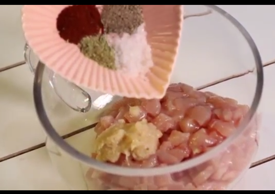 1- نضع الدجاج المنقوع ف البهارات في مقلاة