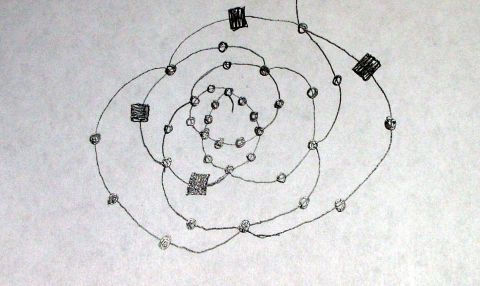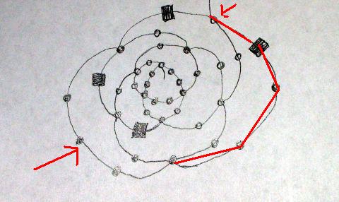 ثم 3 خرزات   وننزل فى ..............................الخرزه رقم اتنين من اول ثلاث خرزات من نفس السطر