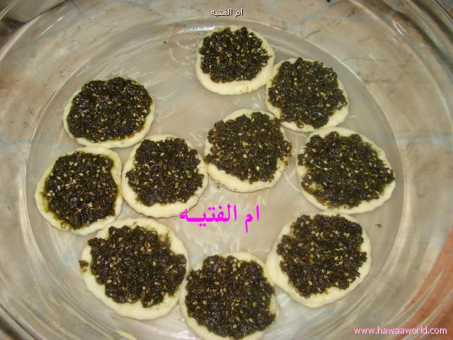 (زعتر وشويه زيت زيتون) الزيت ضرووووري عشان يثبت الزعتر بالعجينه