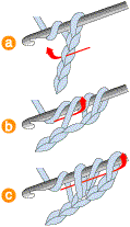 من الاسم نلاحظ انها مثل غرزه البريد ولكن الفرق اننا نسحب من خلال الثلاث لفات مره واحده