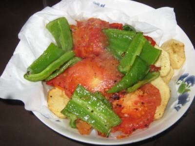 اقلي حلقات بطاط وطماط وفلفل رومي