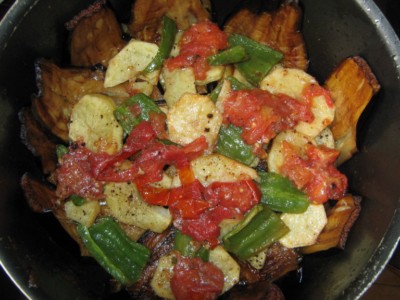 صفي الباذنجان والخضروات في قاع الجدر