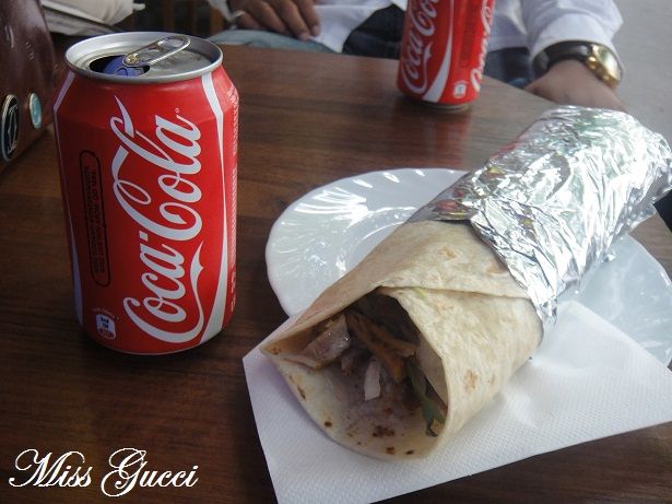 وبعدها اتجهنا للفندق سيرا على الاقدام ومرينا بمطعم تركي وتعشينا شاورما مع كولا ب 13.40 يورو