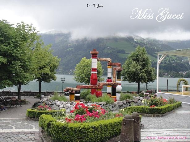 ودخلنا حديقة فندق جراند هوتيل وهذي نافورة الفندق المشهورة