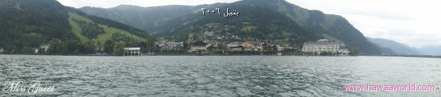 وبعدها علطول على البحيرة وخذينا قارب بالكهربا نص ساعة ب 9.5 يورو