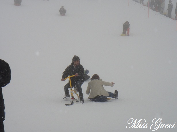 وهنا مكان للتزحلق وفيه اشكال كثير تتزحلق بيها شي على شكل كفر وشي على شكل سيارة وشي على شكل دراجة ومرة وناسة لعبنا فوق العشر مرات