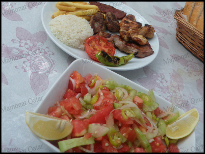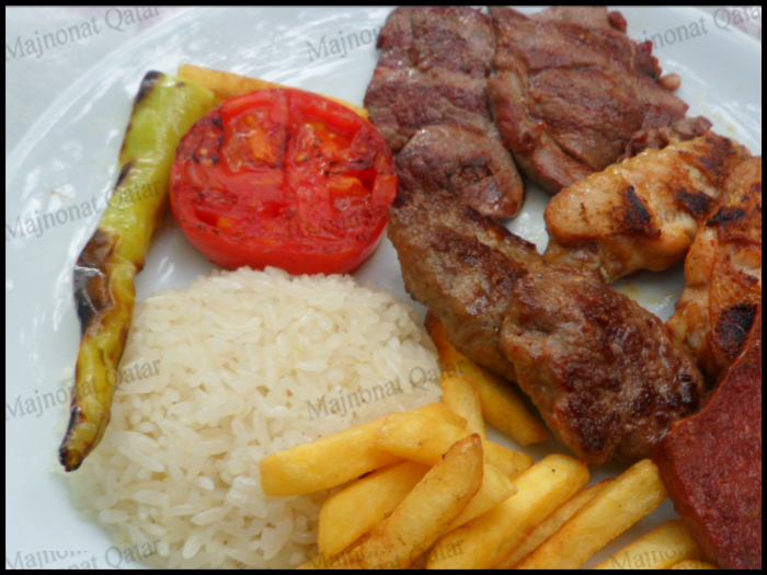هذي الوجبه كفته وكباب وريش وبطاطس ورز مصري > بس هو رزهم المعتمد