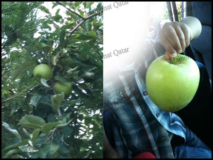 طبعا هاذي الفواكه من بيوت ناس ما قصروا عطوننا من التفاح الاخضر كان طعمه لذيذ مب حامض