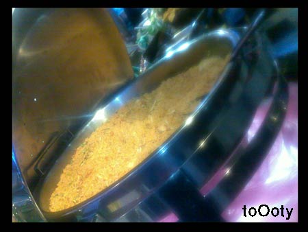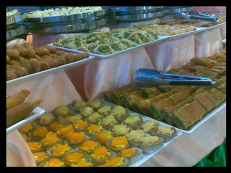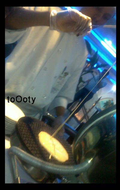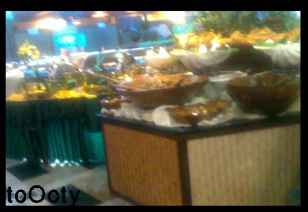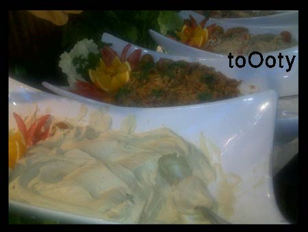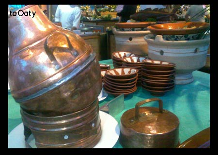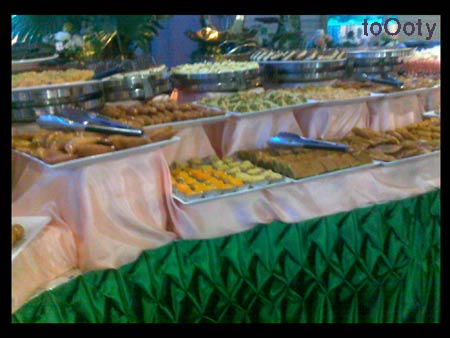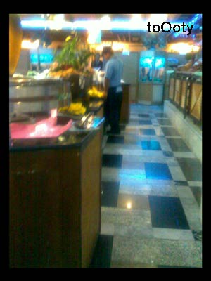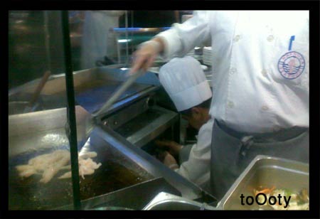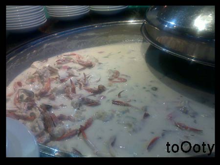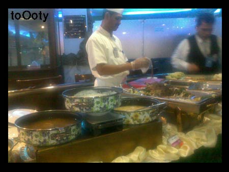 فيه طاولة دائرية وسطها كوشك صغير وسط البوفيه ... تختاري من الطاولة اصناف المأكولات والاعشاب النية وتخين اللي وسط الكوشك يطبخها لك وانتي واقفه ..... خيــــــــال