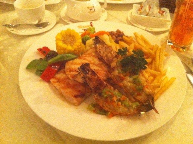 البارحه كنا هناك والاجواء كانت رائعة ونبسطنا كلنا ورتحنا من الاطفال في غرفة الالعاب يتابعون فلم كرتون وعشان خربناها في العيد من كثر اكل اللحم والدسومة طلبت دجاج مع ربيان مشوي لذيييييييذ وخفيف على المعدة وهذا صحني