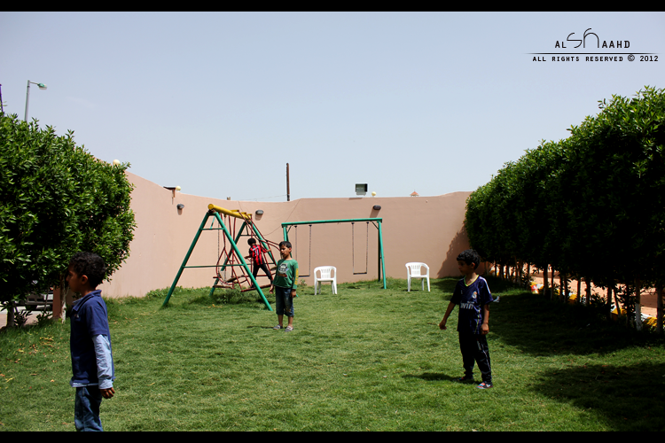 زوم شوي على الالعاب مع الحديقه اللي بالخلف عباره عن مسطح اخضر