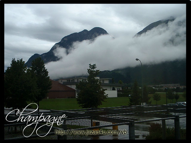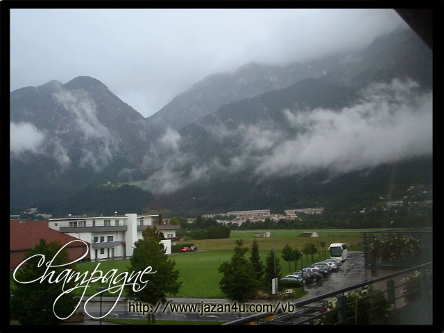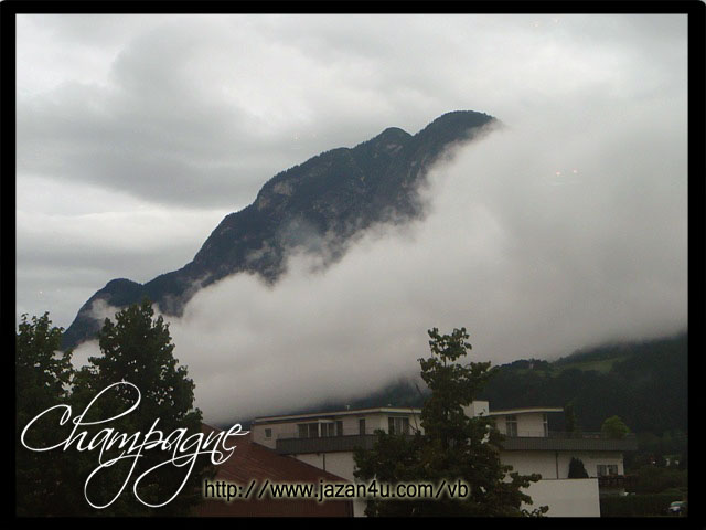 هنا الصورة من شباك الغرفه الصباح كان منظر الغيوم مع الجبال مره خطير