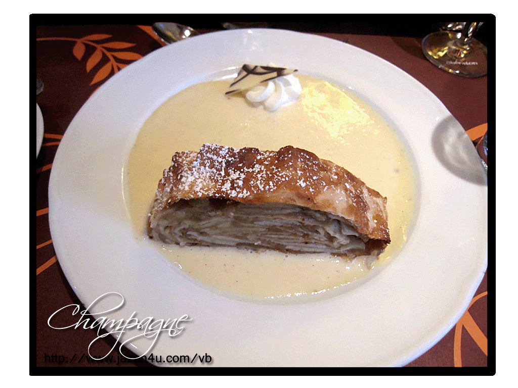 بعدا طبق الحلو عبارة عن فطيرة التفاح مع صوص الكسترد