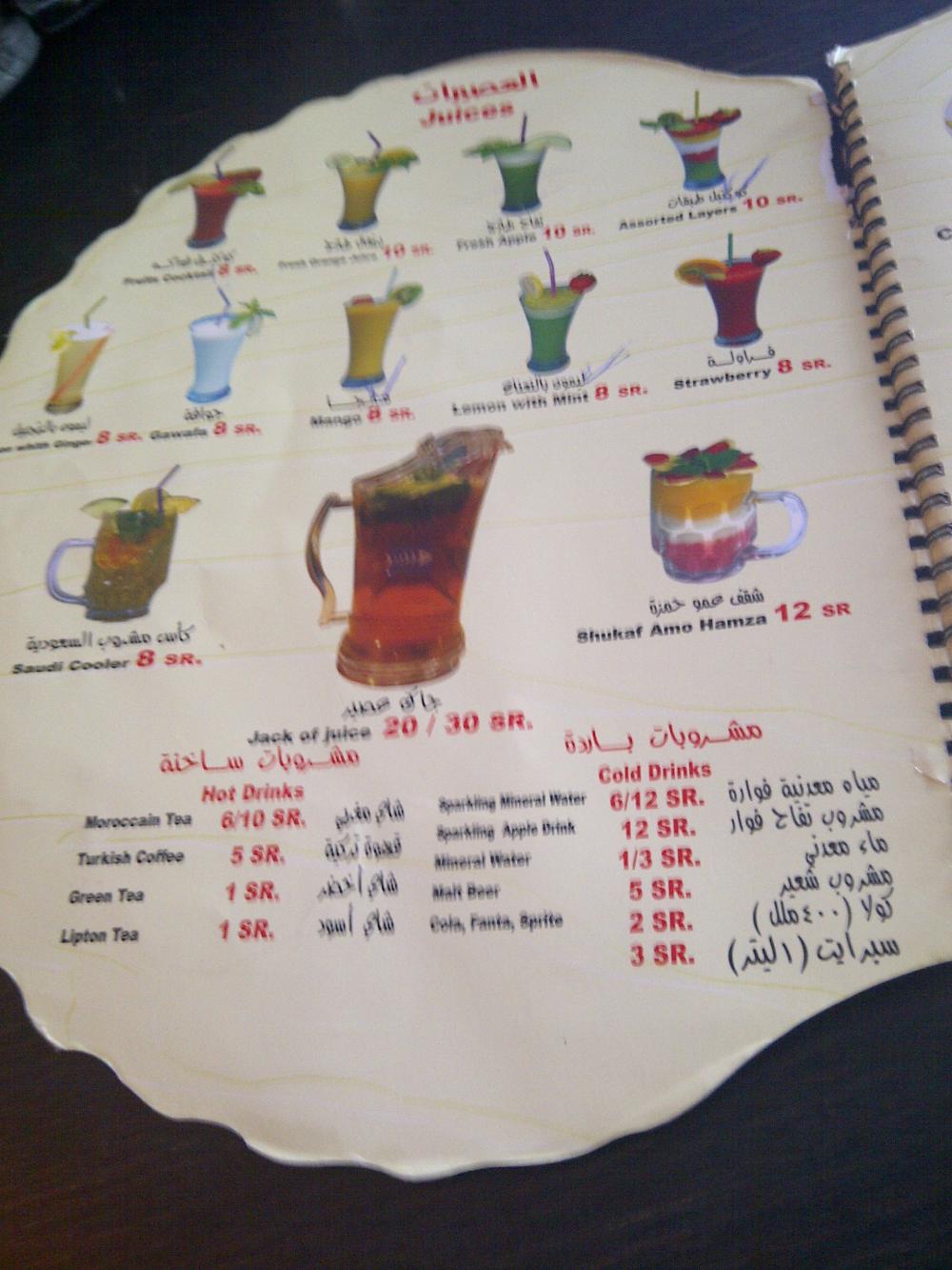 وهذي الاكلات الموجوده عندهم مع اسعارها