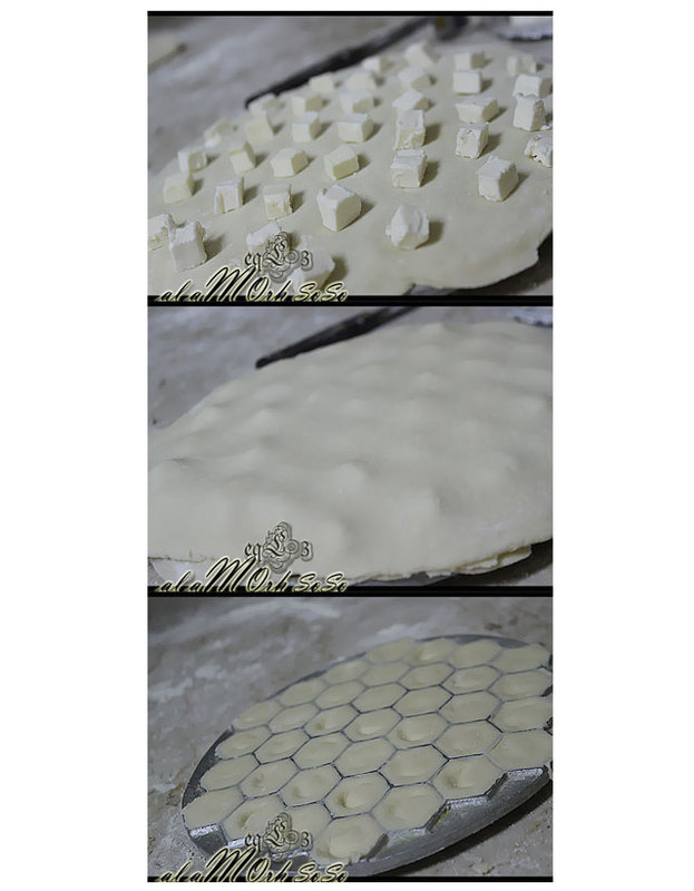افرديها على الرخام وقطعيها بالعجله مربعات